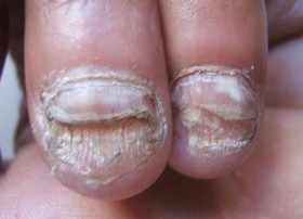 1、指甲可能有的小针尖坑或大的钉板,被称为“油斑黄色的分离。”