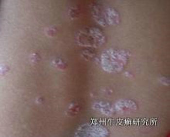 4、牛皮癣患者继发红皮病者称红皮病型银屑病牛皮癣;皮疹有少量渗液,附有湿性鳞屑。或初起为小脓疱,伴有发热等症状者称为脓疱型银屑病;合并关节病变者称为关节型银屑病。