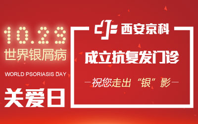 10月29日是“世界银屑病日”,该节日的设立是为了引起全世界对银屑病的关注,提高人们对银屑病的正确认知,让社会大众给予银屑病患者应有的重视和尊重,让银屑病患者得到更好的治疗。在第十个“世界银屑病日”到来之际,西安京科银屑病医院将开展主题为“倡导规范诊疗,共抗银屑顽疾”的关爱活动,帮助银屑病患者摆脱银屑困扰。